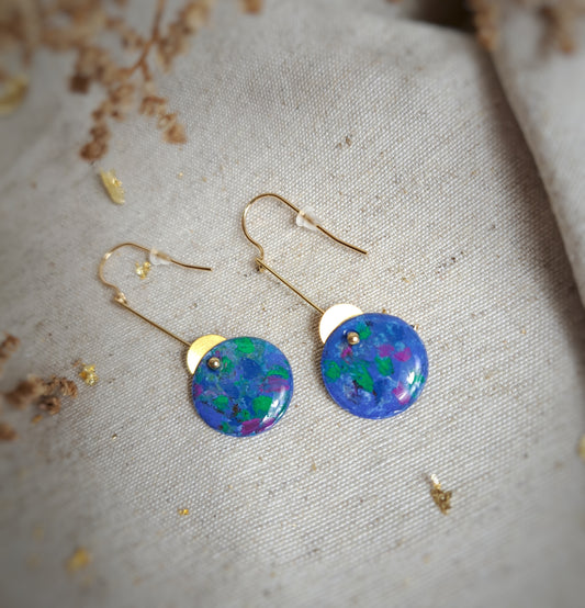 Boucles d'oreilles "Namata IV" Pastel gras, bleu,vert, fushia - plaqué or 18k