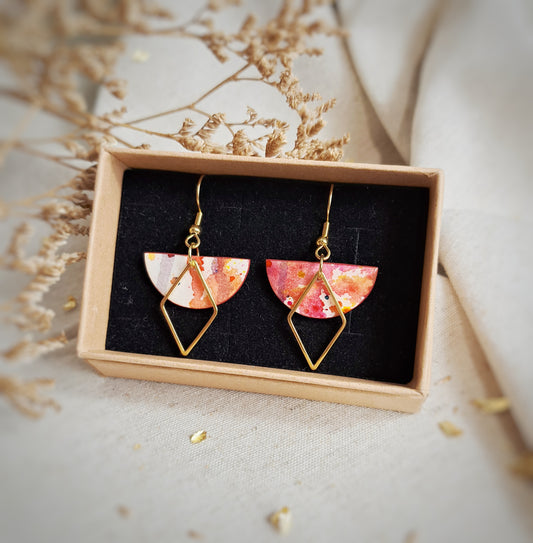 Boucles d'oreilles " " aquarelle rouge, blanc, vermillon - plaqué or 18k