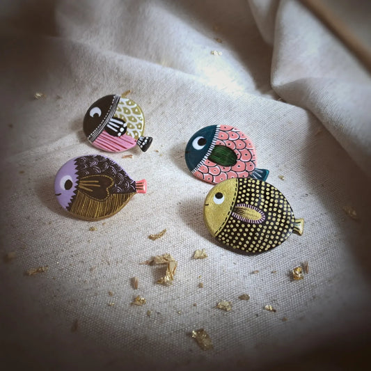 Broche "Poiskaï III" or, noir, parme, violet acrylique design unique argile - or
