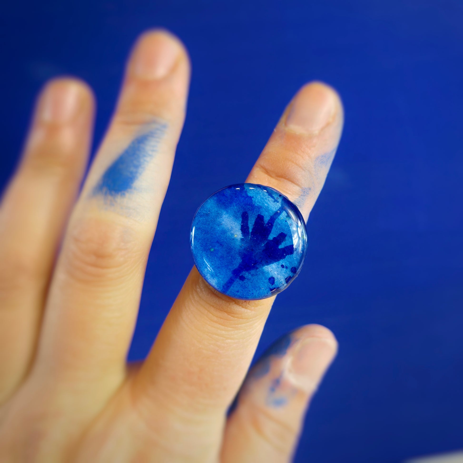 Bague réglable "Empreinte", bleu outremer - Aquarelle